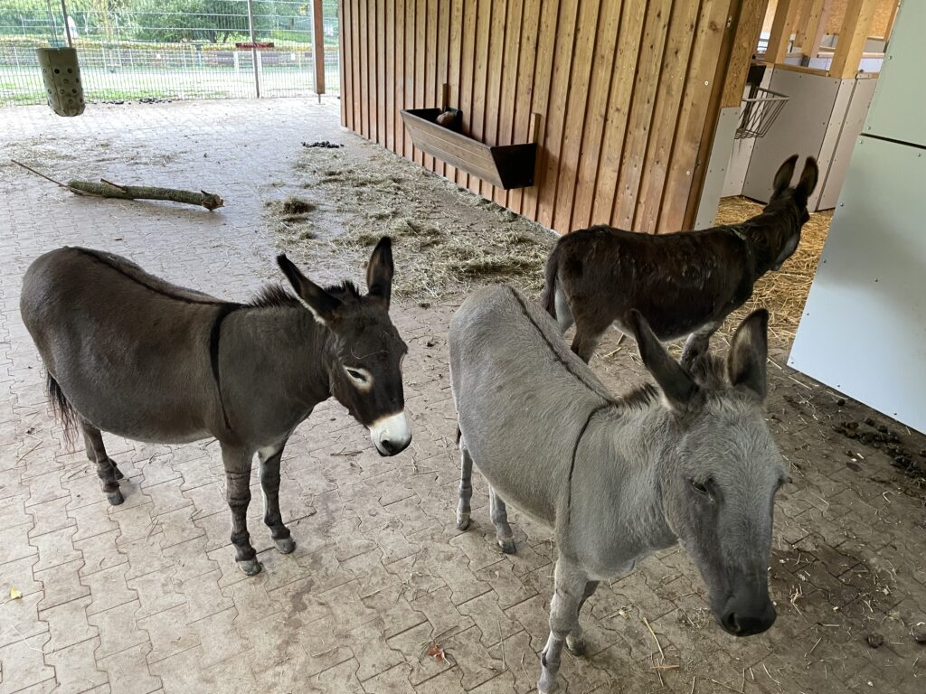 Wir sind im Rahmen der Bildungszugabe zum Bauernhof gefahren und haben dort an dem Mitmach-Programm „Nutztiere hautnah“ teilgenommen. Nach einer Bauernhofführung, bei der wir Schafe, Schweine, Rinder und Hühner gesehen haben, sind wir auf die große Klosterwiese gegangen. Dort wurden Ziegen, Schweine, ein Hahn und Hühner aus ihrem Stall gelassen und wir durften sie streicheln. Mit Schaufeln und Schubkarren haben wir die Ställe ausgemistet und nachdem die Tiere wieder in den Ställen waren, durften wir sie füttern. Großen Spaß hat uns auch die Stohburg gemacht, auf der wir klettern und schaukeln konnten.