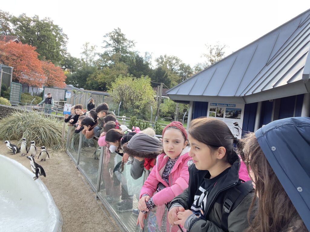 Die Klasse 3 hat am 9. Oktober 2025 über die Kathy Beys Stiftung den Aachener Tierpark besucht. Wir haben viele Tiere beobachtet, gestreichelt und entdeckt. Besonders gefallen haben uns die Ziegen, die Pinguine und der lustige Kakadu. Und den hohen Kletterturm haben wir zwischendurch auch mutig erklommen.