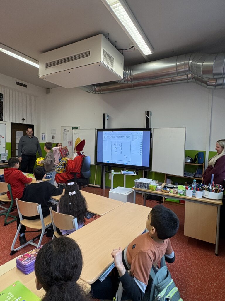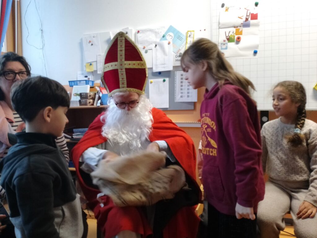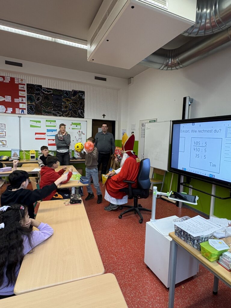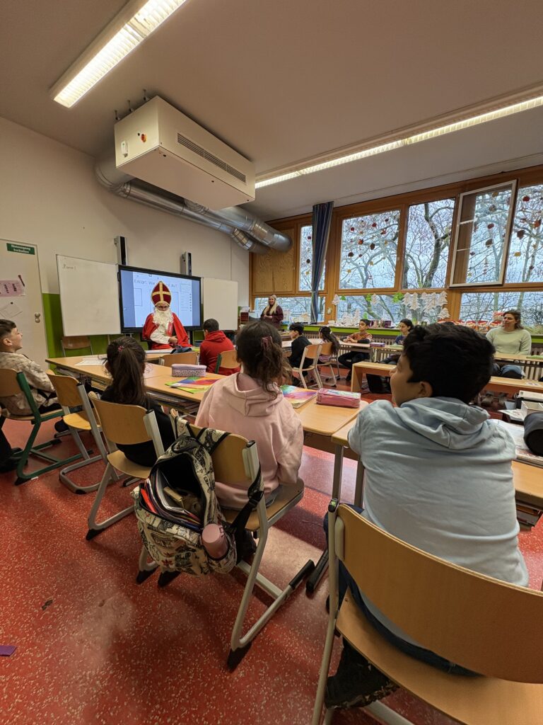 Am Montag, dem 8. Dezember hatte unsere Schule besonderen Besuch. Der Nikolaus kam in jede Klasse und sorgte für leuchtende Augen. Er nahm sich Zeit für die Kinder, hörte zu und erzählte kleine Geschichten.