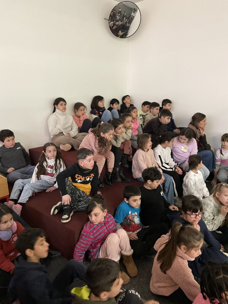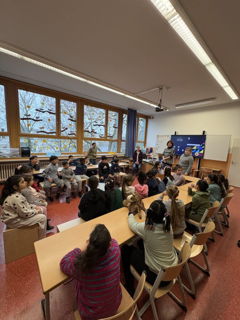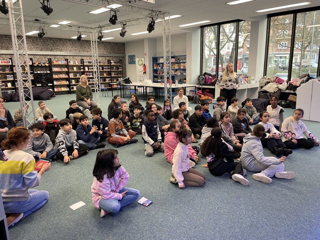 Unsere Klassen haben am Freitag, dem 21.11.2025 einen schönen Ausflug in die Stadtbücherei gemacht. Dort wurden die Kinder an verschiedenen Stationen vorgelesen. Sie hörten spannenden Geschichten an einer Polizeistation, in einem Feuerwehrauto und in verschiedenen Geschäften in der Nähe.