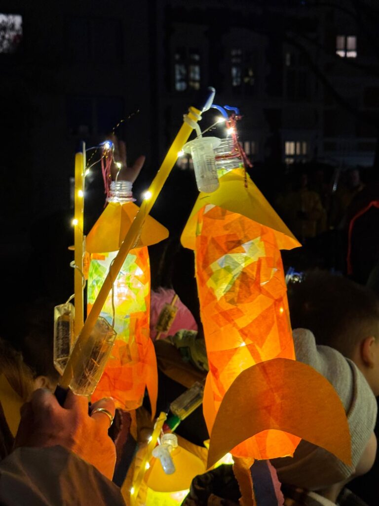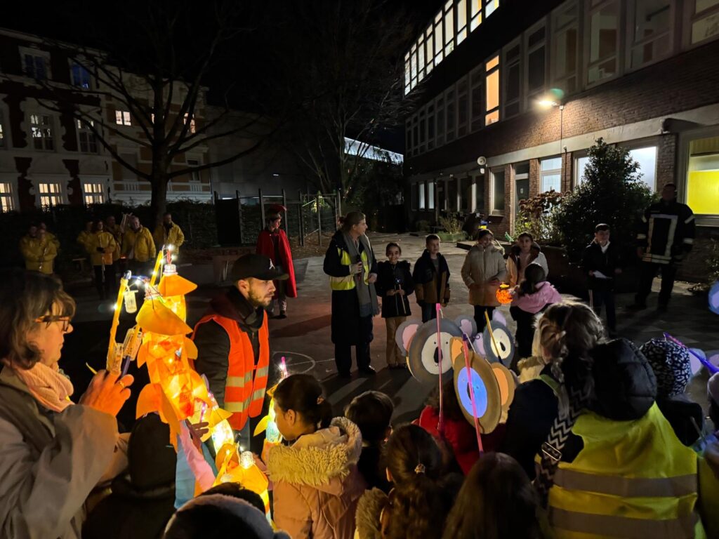 Die Kinder, Lehrerinnen, Lehrer und Eltern der KGS Beeckstraße gingen mit ihren Laternen am Montag, dem 11.11.2025 um 18 Uhr durch die Straßen von Aachen. Sie feierten Sankt Martin mit einem Laternenumzug. Alle liefen mit Laternen durch die Straßen. Es wurde am Feuer gesungen und die Klassensprecher und Klassensprecherinnen lasen die Aktionen zum Teilen vor. Damit wollten sie an den heiligen Martin erinnern.