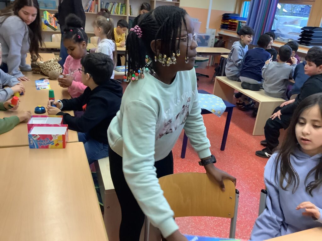 In einer fröhlichen Spielstunde haben die Kinder der Klasse 3 die Erstklässler herzlich in ihre Klasse eingeladen. Gemeinsam wurde gesungen, gelacht und verschiedene Gesellschaftsspiele gespielt. Die Großen erklärten geduldig die Spielregeln und halfen den Jüngeren, sodass schnell eine schöne Gemeinschaft entstand. Für alle Kinder war es eine tolle Gelegenheit, sich besser kennenzulernen und miteinander Spaß zu haben.