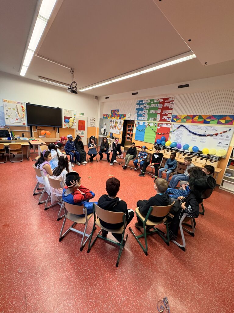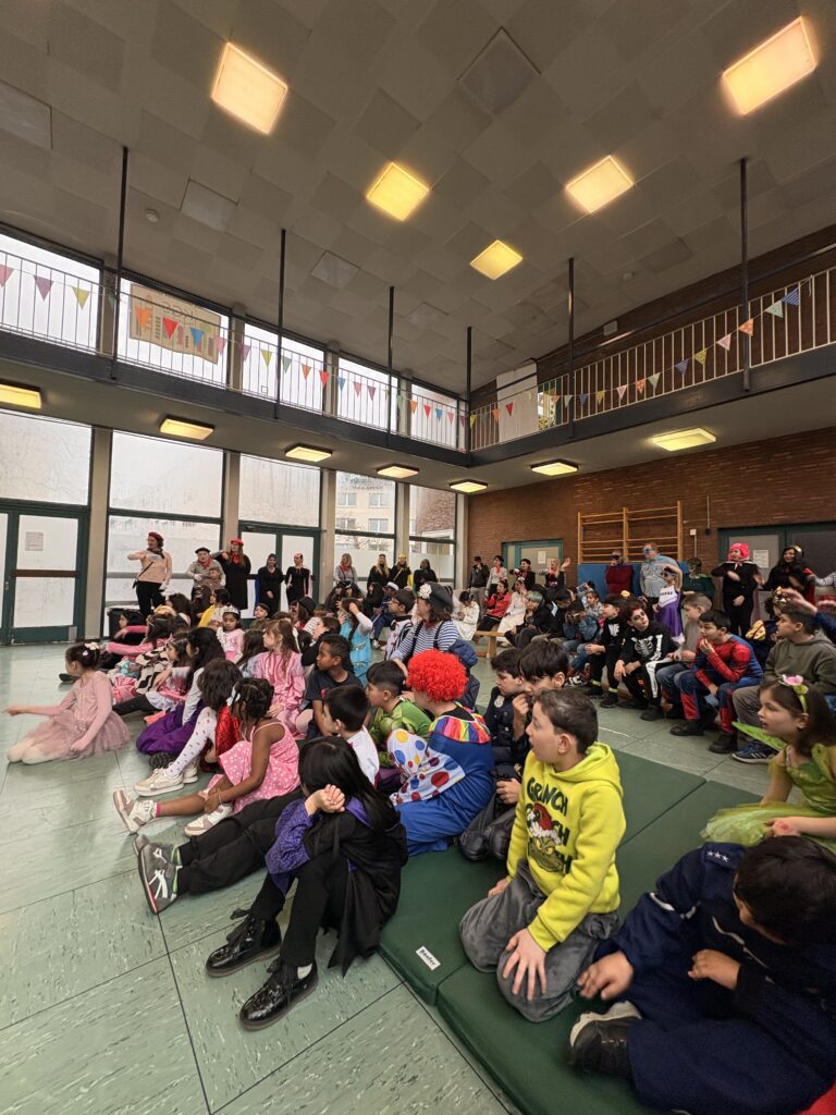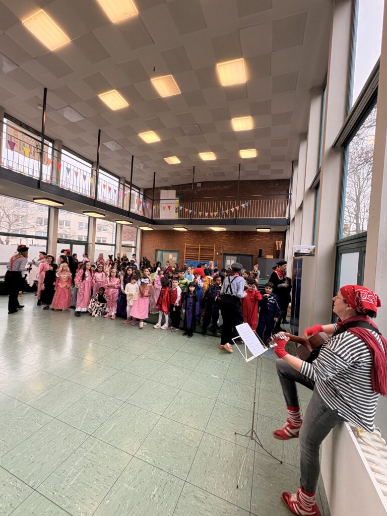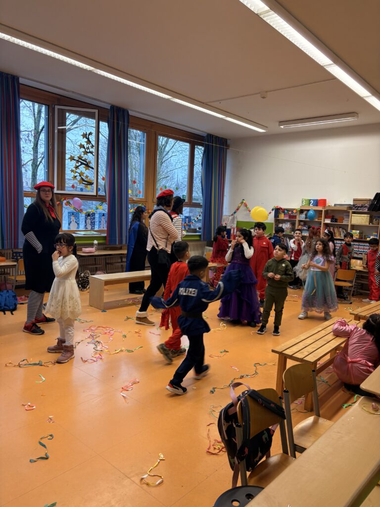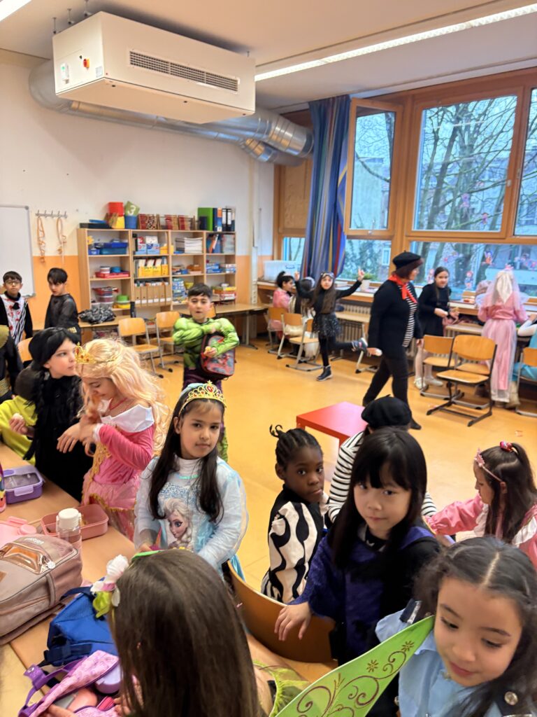 Bunte Kostüme, fröhliche Musik und ausgelassene Stimmung: Unsere diesjährige Karnevalsfeier war ein voller Erfolg! Schon am Morgen kamen die Kinder fantasievoll verkleidet in die Schule und feierten zunächst gemeinsam in ihren Klassen.Anschließend versammelten sich alle in der Aula, wo eine große gemeinsame Karnevalsfeier stattfand. Mit viel Begeisterung präsentierten die Klassen ihre einstudierten Beiträge, es wurde gemeinsam getanzt, gesungen und gelacht. Die Freude und der Spaß waren überall spürbar – ein unvergesslicher Tag für unsere gesamte Schulgemeinschaft!
